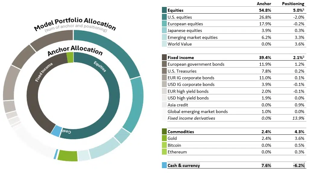 Source: DWS Investment GmbH, 29 January,26.The anchor allocation refers to the strategic asset allocation, while the portfolio positioning refers to the tactical asset allocation. Rounded figures.