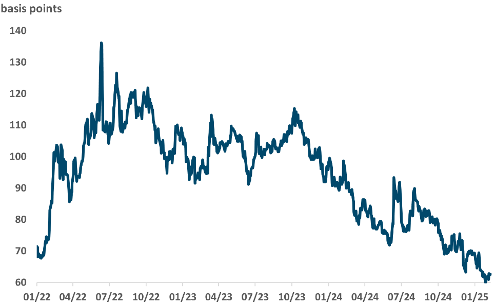 Compared with many other countries in the single currency area, Spain's economic performance has been positive. In the fourth quarter of last year, for instance, growth of 0.8% quarter-on-quarter exceeded consensus expectations. On an annualized basis, Spanish output grew by 3.5% in the fourth quarter, implying an annual growth rate of 3.2% in 2024.[1] These figures are even more impressive given the devastating floods in the Valencia region, which might have been expected to reduce growth.