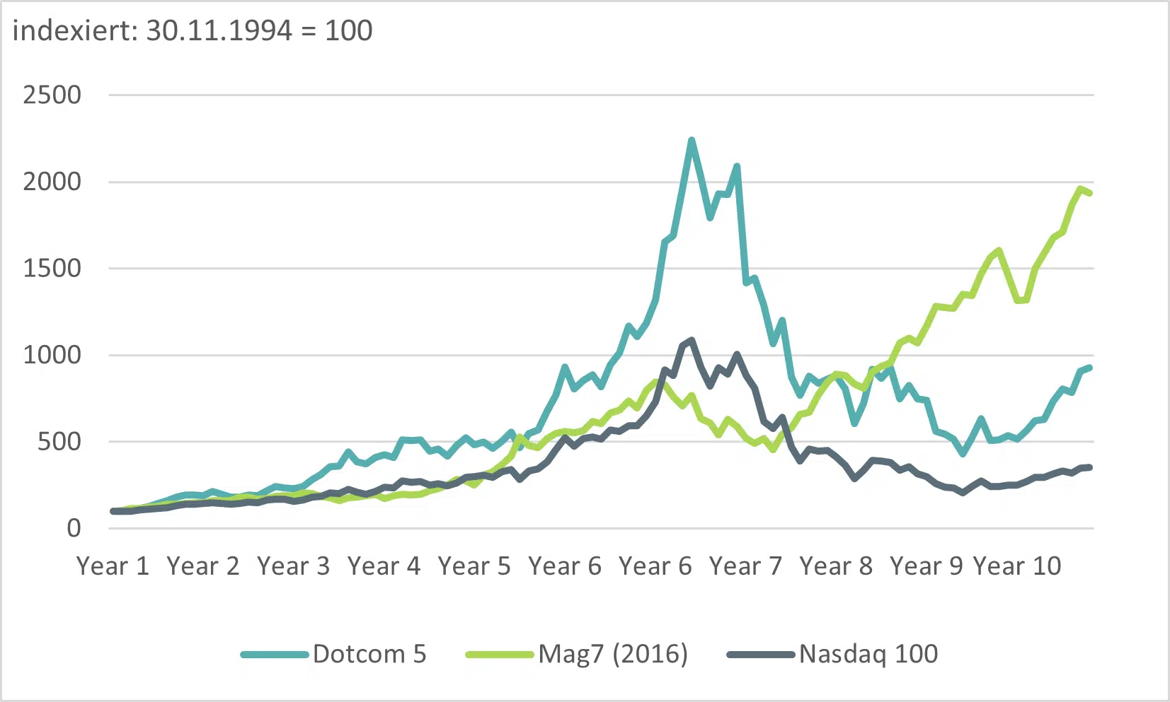 Sources: Bloomberg Finance L.P.; DWS Investment GmbH; as of December 2, 2025 | 3.1b Nasdaq and Dotcom 5 1994 vs. Mag 7 since 2016
