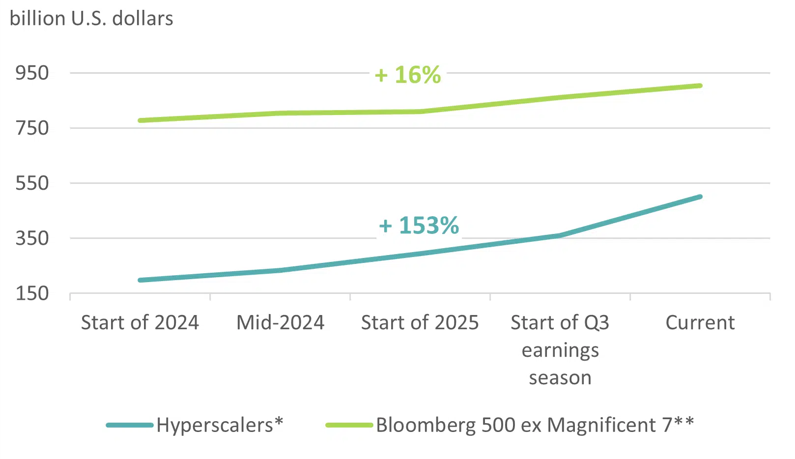 Looking at the accounts shows that the extensive investment plans of the four hyperscalers have transformed them from lean technology companies into capital-intensive infrastructure providers with high recurring investment needs. Historically, these firms underperformed the broader market immediately after a bubble burst,4 but not just then.